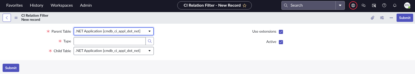 - Search for Configuration Management For Scoped Apps (CMDB).
